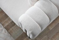 Материалите и текстурата на дивана Stella са внимателно подбрани, за да осигурят дълготрайност и комфорт. Тапицерията от меко бяло букле добавя модерен и стилен завършек, докато металната основа гарантира стабилност и издържливост. Този диван е перфектен за онези, които търсят комбинация от елегантна визия и практичност.
