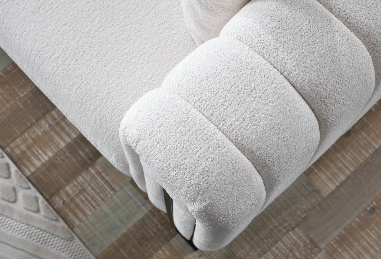Дизайнерски Диван Stella – Артистичен Дизайн с Бяло Букле и Линейна Метална Основа