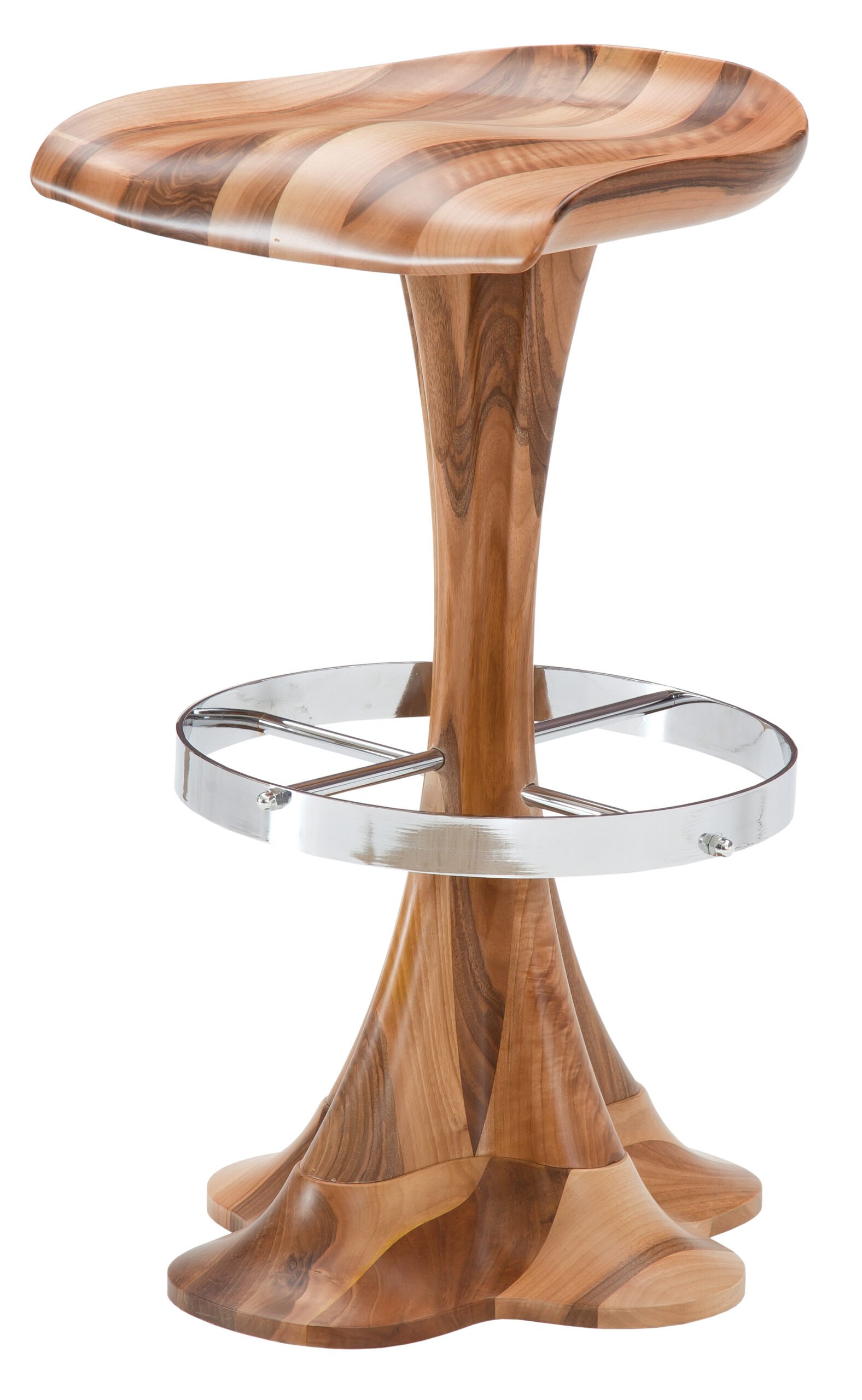 Бар стол със заоблени линии и ръчна изработка от масивно дърво. Уникална форма и удобство, подходящ за кухня, бар или кафе.