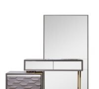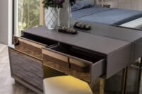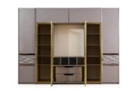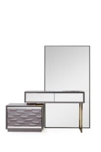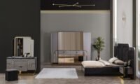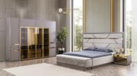 Gallina – Луксозен спален комплект съчетава елегантност и функционалност. Със своя мраморен ефект и златисти детайли, този комплект придава луксозен вид на всяка спалня. Включените елементи осигуряват достатъчно пространство за съхранение и комфорт.