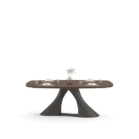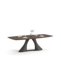 Масата Olivia въвежда съвременно звучене в дизайна на трапезни маси с впечатляващите си двойни, скулптурни крака. Съчетавайки елегантност и характер, тя се превръща във фокусна точка на всяка трапезария. Благодарение на плота от дървесен фурнир и разнообразието от размери, Olivia предлага стилно и практично решение за модерен интериор.